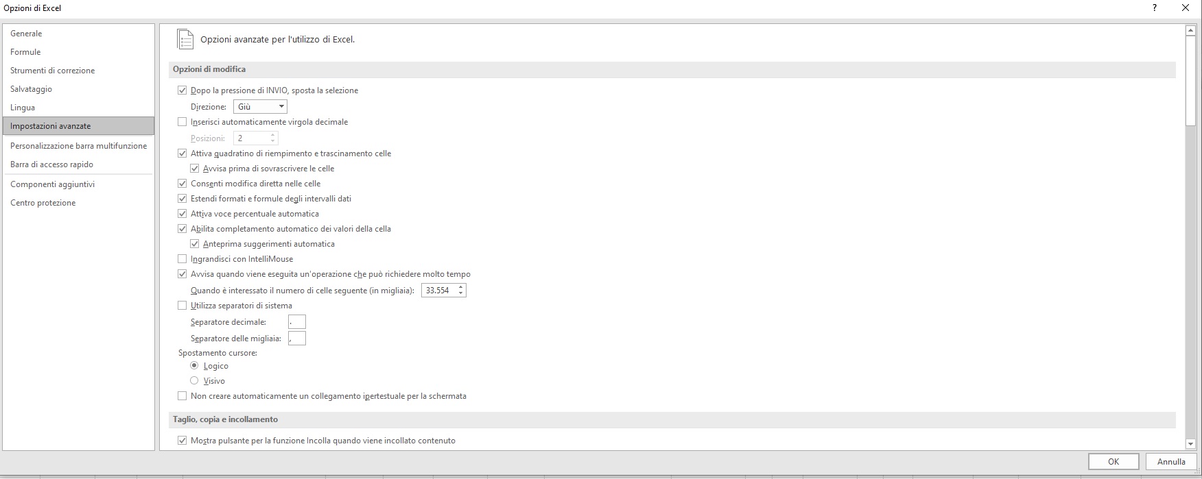- Togliere la spunta dal campo ‘Utilizza separatori di sistema’